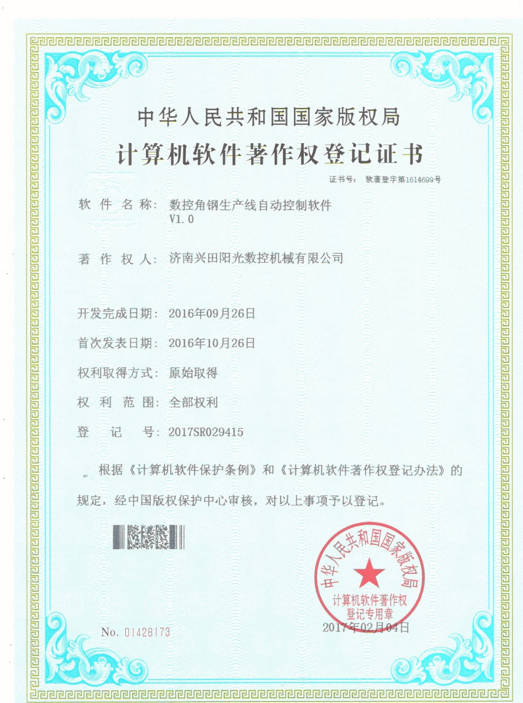山東興田陽光智能裝備股份有限公司,原名濟南興田陽光數(shù)控機械有限公司,齊魯股權(quán)交易中心掛牌企業(yè)(股權(quán)代碼及簡稱:100817 興田智能),是一家集產(chǎn)品開發(fā)、生產(chǎn)、銷售為一體的新型現(xiàn)代民營股份制并且具有自主進出口經(jīng)營權(quán)的山東省高新技術(shù)企業(yè)。公司坐落在美麗的泉城西部,西靠玉清湖觀光旅游風(fēng)景區(qū),東鄰京滬高鐵、京福高速公路及山東現(xiàn)代化國際物流中心,四面綠樹成蔭,廠內(nèi)花團錦簇,交通便利,環(huán)境幽雅。公司主要從事鐵塔、管塔、鋼結(jié)構(gòu)、電力鐵附件等行業(yè)型材的智能制造類數(shù)控加工設(shè)備和其他非標(biāo)準(zhǔn)數(shù)控設(shè)備智的研發(fā)、生產(chǎn)和銷售業(yè)務(wù)……
