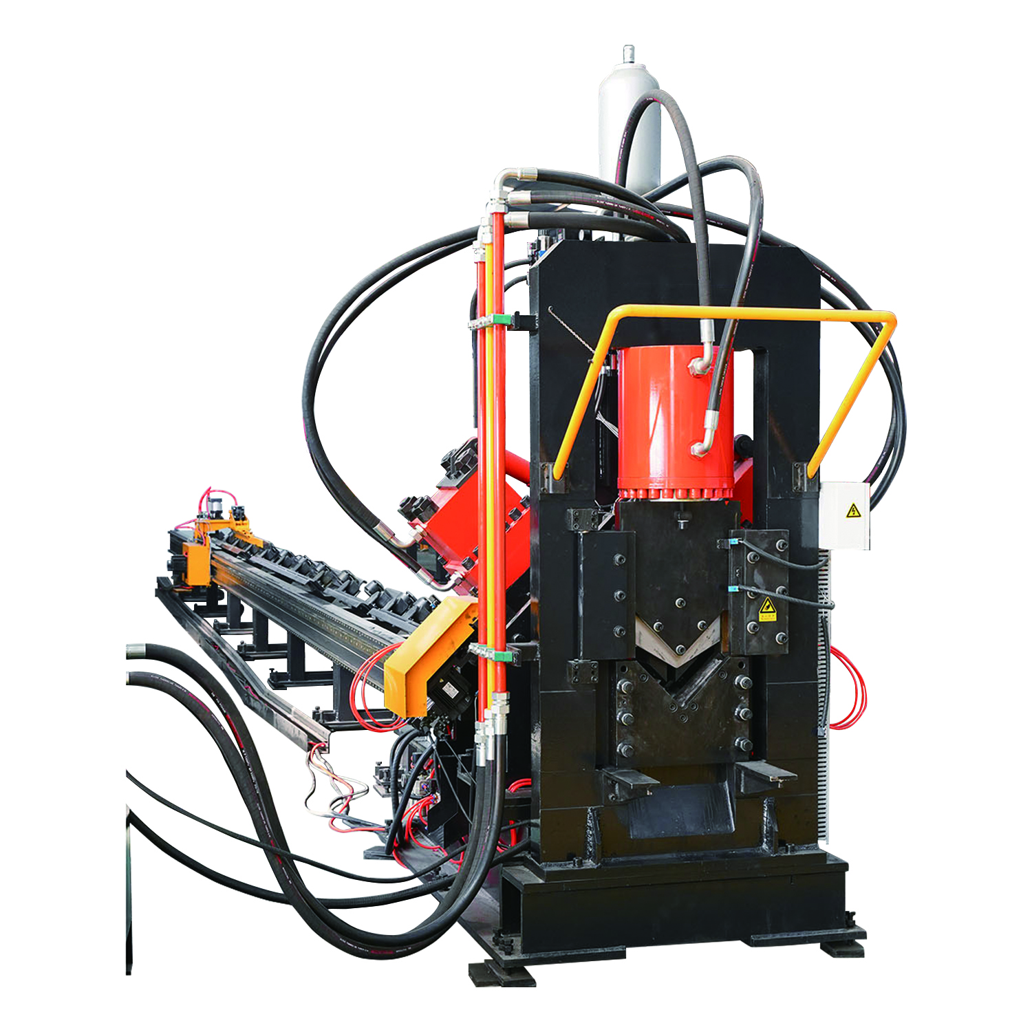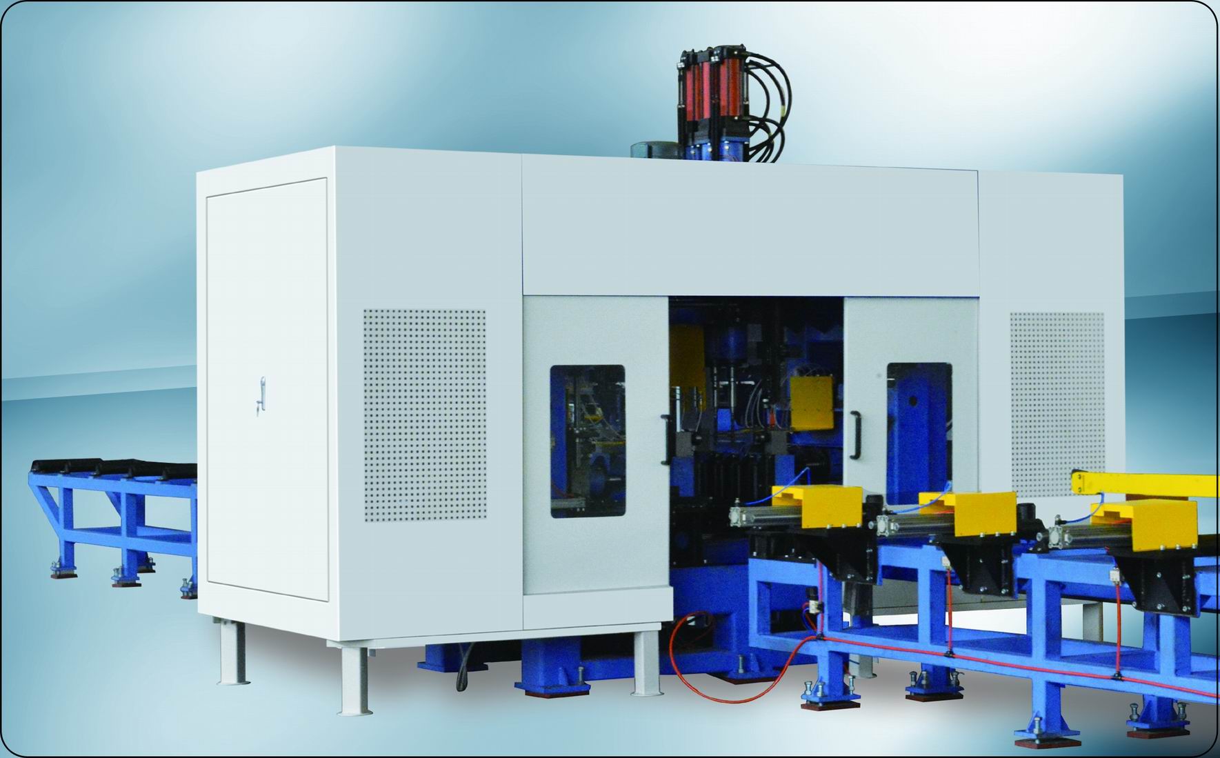 本生產(chǎn)線用于汽車車架、縱梁、橫梁、板材沖孔、鉆孔作業(yè)的加工設(shè)備。總體結(jié)構(gòu)設(shè)計合理,鋼性好,工作穩(wěn)定,換模準(zhǔn)確可靠,加工效率高。